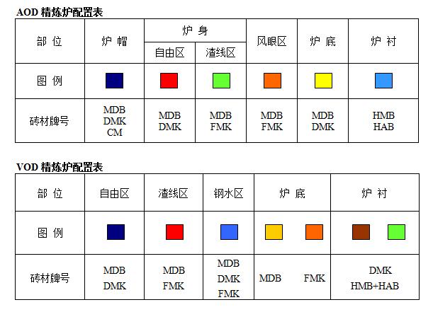 ●AOD 自由區(qū)及爐底工作襯:工作環(huán)境較差,必須經(jīng)受強堿性渣鋼液的侵蝕或噴濺侵蝕。可選擇MDB或DMK系列產(chǎn)品。