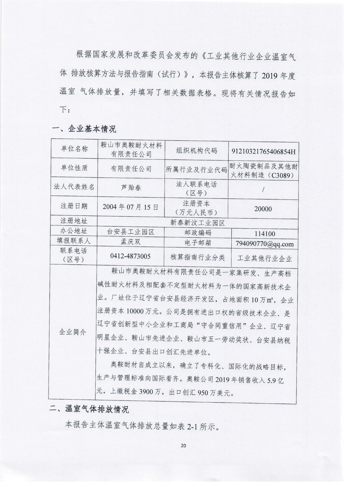 溫室氣體排放報(bào)告